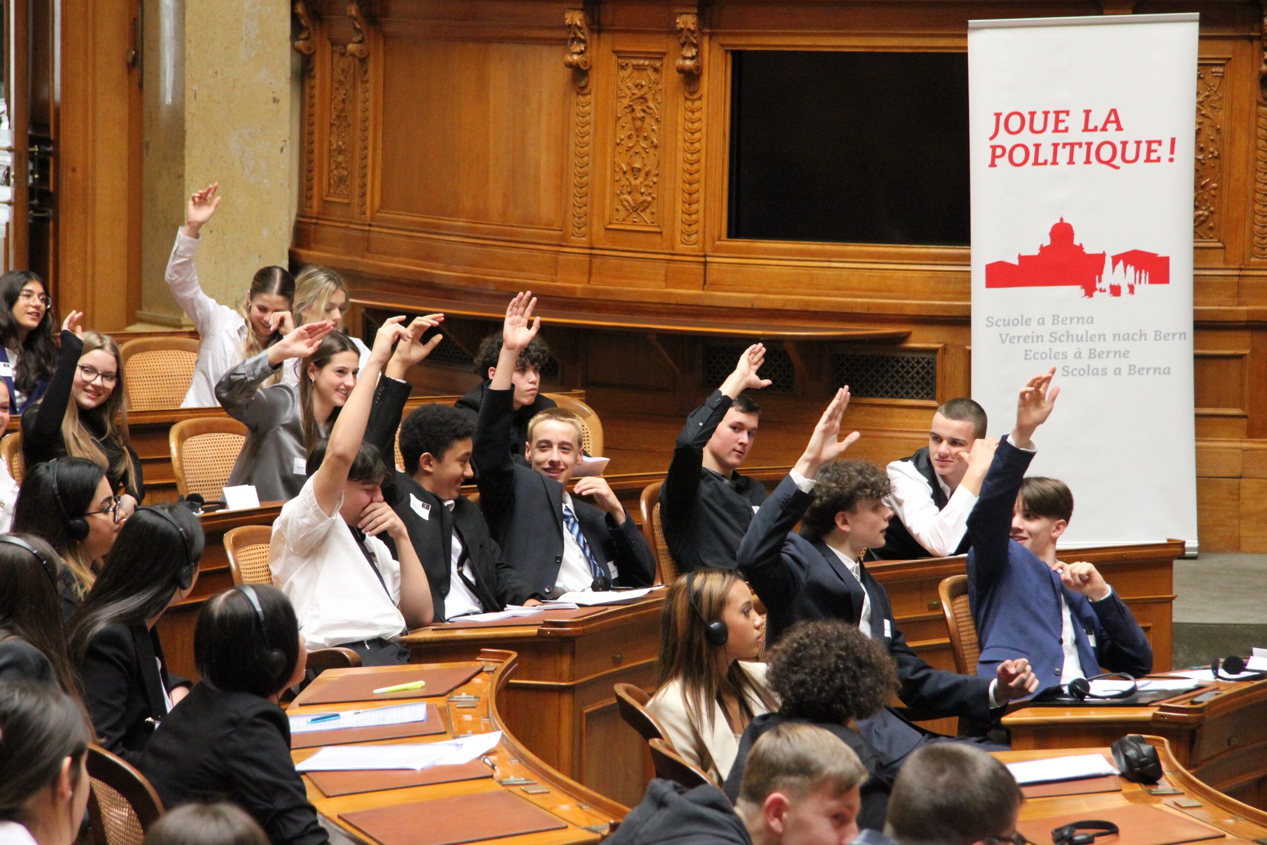 «The simulation game provides an opportunity for a playful exchange about politics across language barriers. In Bern and in the Federal Parliament, young people work on issues that are important to them. In the debates, the students learn whether they can convince others of their ideas and what strong counterarguments there are. In addition, they gain insight into the processes and rules of politics. This strengthens their trust in democratic institutions. The game leaves a lasting impression. It stimulates both thought and emotion.»